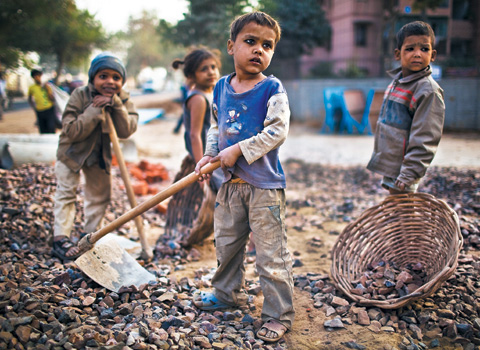 ![]() 上月30日,在新德里贾瓦哈拉尔-尼赫鲁体育场施工现场看到的童工。本应拿玩具的小手却握着镐头……谁让这些孩子们拿起镐头呢?据推算,目前在印度有钱人家里当下人或饭店服务员、工地工人等的儿童多达1200万。