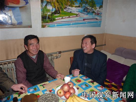 图3公司副经理王福怀(右一)深入华山公司聋哑困难职工秦永胜家中慰问。 亚 一 摄 图4日前,公司总经理助理王兴波一行看望慰问原三处退休困难职工徐汉生一家,为他们送去了节日的问候和祝福。图为公司总经理助理王兴波(右一)与徐汉生亲切交谈。