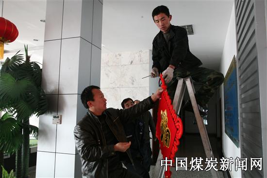 本网讯:新年来临之际,为了向坚守在矿区各个岗位上的员工们敬以节日的慰问和新春的祝福,神宁集团枣泉煤矿积极安排科室工作人员用大红灯笼、中国结装扮着矿区,传递喜讯,将祥和、愉悦的节日气息和新春的祝福传送给每一名员工。图中,该矿后勤管理科工作人员正准备将大红灯笼、中国结装扮办公楼,营造喜庆氛围。