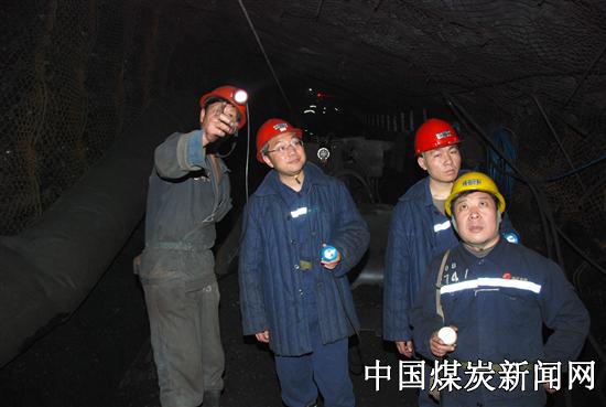 本网讯:春节期间,江苏徐州矿务集团张双楼矿管理干部认真履职,实现了24小时现场安全检查管理不失控。图为该矿管理人员在掘进迎头查看顶板情况,消除安全隐患。
