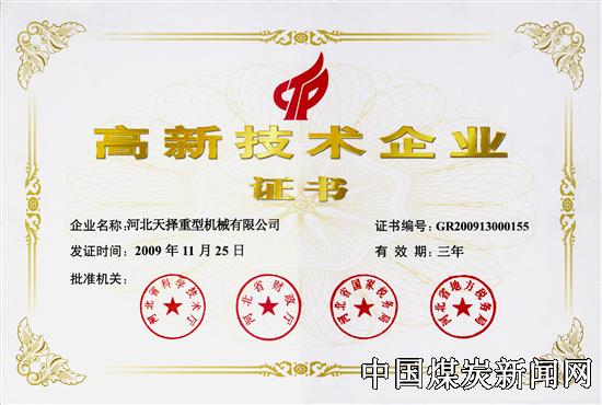 ![]() ![]() 本网讯 近年来,冀中能源峰峰集团河北天择重型机械有限公司始终把自主创新放在重要位置,促进了产品结构的优化升级,产品的市场竞争力明显增强,企业也呈现出良好的发展势头,公司先后荣获国家高新技术企业、全国煤炭机械工业优秀企业、中国诚信企业、河北省优秀发明创造单位、河北省知识产权优势培育单位、河北省质量效益型企业、河北省守合同重信用企业等荣誉称号。