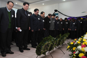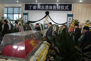 国家安监总局、国家煤监局、河南省人民政府、河南煤监局、河南省安监局等出席丁安同志追悼会的各级领导和生前的亲朋好友以及家属向丁安同志默哀、告别。