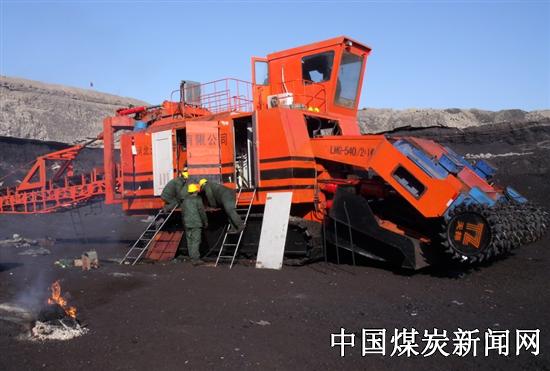 此次发往新疆的LMG540露天采煤机在到达目的地后,该公司露天采煤队职工立即远赴新疆开展紧张的工作。让我们来看看他们的工作环境:三千多公里荒无人烟的新疆戈壁上,一杆红旗插在三间依土而建的砖房上猎猎作响,“迎戈壁风雪,铸天择辉煌”作为“队训”贴在砖房的门框,“济才天山”作为“队愿”横贴在门楣;在砖房不远处,九个人的小队迎着夹杂着砂子的寒风,围着该公司自主设计制作的露天采煤机,开采着、挖掘着,顶着寒风大声的喊叫着……这就是露天采煤公司新疆采煤队工作现场的真实写照。正是在气温零下30多度,风级5级以上,工作现场维修工具、备件稀缺,居住环境恶劣(无水无电的)的情况下,奋战了60多个日夜。他们不负公司的重托,完成了露天采煤机的运输、组装、柴油发电机磨合、试运行和试采工作,也实现了新疆采煤队“年前试产”的承诺。