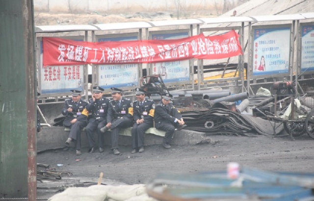 ![]() 4月7日下午,在发生透水事故的王家岭煤矿,大约30辆急救车停靠在矿区弯道上,医护人员在车里原地待命,在升入井人行通道口,一辆塔吊正在卸下排水管道。矿井东侧和北侧的7个排水管中流水的还有一个半,救援人员称井下几乎再无幸存者。 ![]()