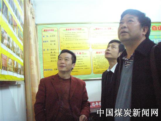本网讯:4月13日,湖南省煤炭总工会主席陈其华一行在白山坪公司工会主席陈秋华、副主席黄志平的陪同下莅临白山坪煤矿检查指导群监工作。 陈主席一行走进该矿群安接待站,认真的检查了群监员的组织机构、群监员上岗一览表、群监员六大权力、群监员津贴发放制度、群监员活动剪影、群监员考核情况公布、群监员汇报隐患登记情况、群监员重大隐患筛选提示、群监员汇报隐患跟踪整改情况,随后还检查了“班组建设”阳光台,了解了井下使用无线通讯系统后,对该矿群监工作制度健全,不断完善和充实,现场管理到位,创新意识强,内容丰富,工会工作围绕安全生产贴近了员工,促进了企业发展,给予了高度的评价和充分肯定,并表示要把该矿的群监工作经验向其他单位推广。