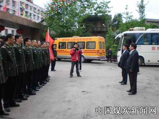 【本网讯】4月14日接四川省矿山救护总队命令,“川煤芙蓉公司救消大队集结队伍奔赴青海玉树参加抗震救灾”,芙蓉公司救消大队接到命令后,立即携带抢险救援装备,出动两台救援车,指战员13人,由芙蓉公司通风防灾部副部长陈益能带队奔赴灾区,出发前川煤芙蓉公司党委书记杨俊林、副总裁王才双、纪委书记工会主席杜宣布华向救援人员奔赴灾区送行,临行前党委书记杨俊林对参加抗震救灾人员作了战前动员,要求指战员要发扬“5.12”抗震救灾精神,发挥出川煤集团芙蓉公司救援队特别能战斗的精神,为抢险救灾,夺取新的胜利,再立新功。图为芙蓉公司领导向指战员送行。