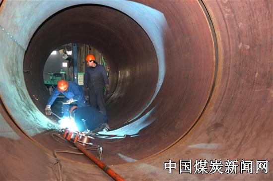 图为该公司正在为青海昆仑碱业有限公司制造ф3×29.7米化灰机时的场面。