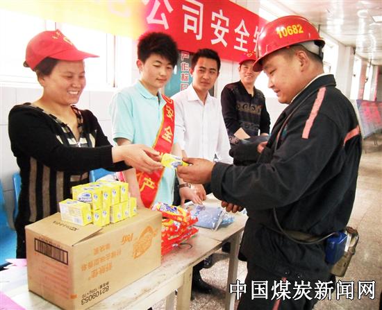 作中时刻注意安全,这是给你的奖励!”一名刚刚升井的矿工乐呵呵的从戴着安全生产字样绶带的活动组织者手中接过一袋洗衣粉。 5月4日临涣煤电公司在副井井口开展了安全知识竞赛,活动组织者各个身披红色绶带,鲜亮的黄色大字提醒着矿工们安全的重要性。他们一大早就来到井口,把涉及到安全生产、白国周班组管理法等的问题悬挂在过道上,每一个上下井的矿工一眼就能看到这些题目。矿工们挑选自己知道的问题,踊跃参与,积极回答。对回答问题正确的矿工,组织者会发放香皂、洗衣粉、毛巾等纪念品。