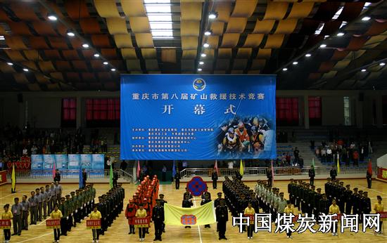 【本网讯】6月7日,由重庆市煤矿安全监察局、重庆煤炭工业管理局、重庆市总工会、共青团重庆市市委主办,重庆市煤监局救援指挥中心,重庆煤炭应急救援指挥中心组织,重庆能源集团松藻煤电公司承办的重庆市第八届国有大矿矿山救援比武大赛在松藻体育中心隆重举行。五支取得国家二级资质认证的市属煤矿代表队派出40名救护指战员参加了本次比赛。 图一为开幕式现场