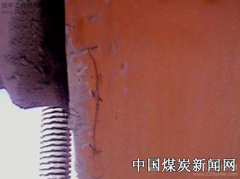 2:大臂上面,小臂油缸底座和大臂连接处也出现了3厘米的裂缝。