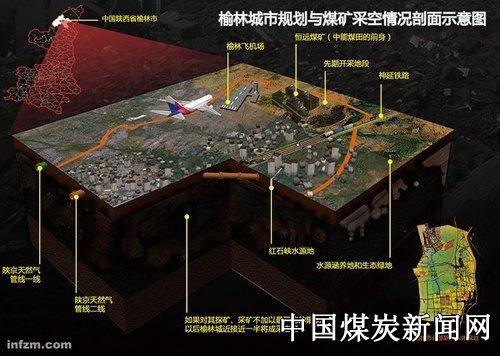 榆林市主管煤炭的原副市长王斌说,“大约2002年,该煤矿曾提出过扩产要求,我不同意。后来,煤矿又提出要修建铁路专线,我还是没有批,原因是煤矿距离城区、机场太近,也影响到城市水源地。不过,他们还是通过其他渠道获得了批文”。从此,煤矿扩产一发不可收,而这位副市长也因无力阻止资源突进开发而愤然辞职。 规划中的城市中心城区近一半面积与煤矿探矿区重叠,悬于风险之上 之所以对中能煤田无从下手,缘于这家煤矿是省属企业。“市里没有管辖权,想管也管不了。”赵政才说。 从榆林市城区经210国道北上,半小时车程便进入榆阳区昌汉界村,当地人说这片沙地草滩下寸土寸金,只需两三锄头就能挖到煤。中能煤田就在这片地底下,其前身原是一座年产15万吨的私营小煤窑(恒远煤矿),2003年被民企中方信(控股)有限公司收购,之后蒲白矿务局和华电煤业集团受邀加盟,遂摇身变为一家国有控股的中能煤田,名下可采储量达4亿吨,隶属陕西煤化工集团。若以中能煤田的竖井为起点,距离榆林主城不过十余公里,站在榆林市城区高楼上甚至就能看到煤矿厂房。 陕西当地一份官方文件称,“陕西中能榆阳煤矿的采矿区、探矿区及井田勘察覆盖了城市中心规划区西北部172平方公里范围……” 这意味着,榆林市规划中的400平方公里中心城区近一半面积与煤矿探矿区重叠,悬于风险之上。“如若开采下去,半座城市将被掏空。”7月3日,榆林市常务副市长赵政才如是解释。 一并遭到威胁的,还有埋在探矿区地下的陕京天然气管线一线、二线,榆林-濮阳-济南输气管线,以及地面上的神(木)延(安)铁路及陕蒙高速公路。2004年,榆阳区境内就发现一处铁路段地下暗藏采空区,历经半年处理,灌浆回填的水泥砂浆近10万立方米。 煤矿开采甚至已严重危及城市的惟一水源——红石峡水源地,这里供给榆林城区70%人口和公共用水。当地一份官方文件就此特别说明,该矿已使水源地地下隔水层遭到破坏,地下水位已由过去的5-7米下降至16米以下,漏斗现象明显。而距离机场不远,耗资百万元修建的昌汉界“救命工程”——200亩农田灌溉水系,也在该煤矿大面积综采后断水,枯竭,直至废弃。 比危及地下水更恶劣的是中能煤田向地表直排井下污水。榆阳区环保局副局长赵明生告诉记者,今年4月13日区环保局曾责令煤矿限期改正,并处十万元罚款。不过,罚款还未执行到位。一家名叫大漠之星的苗圃的部分苗木,据称被污水浸泡长达十个月之久,损失超过百万元。 今年6月末,榆林市公布了2010年度第一批挂牌督办环境违法重点案件,宣称“安全绿色开采、清洁节能减排”典范的中能煤田意外地位列第二,违法事实还是直排污水。 讽刺的是,该企业两年前还获评榆林市“十佳环境友好企业”。当地环保部门的解释是,那是对该煤矿未扩产之前的评价,不代表以后。 . 榆林,下一个神木? “ 相当于塌掉了四分之一个榆林市中心城区。”