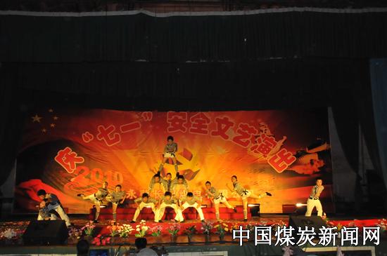 本网讯:7月1日,一场以歌颂伟大的中国共产党、唱响安全第一为主题的文艺晚会在长河煤电公司隆重举行。 来自该公司各厂、队的17支代表队参加了表演。晚7:30,文艺晚会在一曲舞蹈《好运来》的舞动中拉开了帷幕。 晚会隆重表彰了2010年度党内“创先争优”先进集体和个人,党委书记陈斌发表了热情洋溢的讲话,回顾党的光辉历程,歌颂党的丰功伟绩,号召全司上下以先进为榜样,围绕全年“三大任务”、“四大工程”、“五大目标“而努力奋斗。一首首耳熟能详的《没有共产党就没有新中国》、《太阳最红,毛主席最亲》、《社会主义好》、《大海航行靠舵手》等红色经典歌曲,唱出了矿山儿女对党的生日的美好祝愿。一首《安全第一胸中装》,雄壮有力,唱出了当今矿山人自觉遵章守纪的豪迈气势。诗朗诵《安全铸就辉煌》、舞蹈《呼唤生命》、小品《违章帮教》,呼唤广大职工树立“安全第一、预防为主”的安全思想。整场演出高潮频出,精彩不断,不时赢得现场观众热烈的掌声。最后,晚会在舞蹈《永荣力量》的优美旋律中圆满结束。