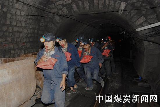 广西右江矿务局经常性开展矿井各种自然灾害事故的应急演练活动,不断提高职工的安全生产意识,加强矿工正确应对矿井灾害事故的应变能力。图为近日该局开展的矿井火灾事故应急演练中矿工们正紧张而有序撤退。