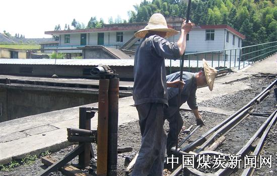 福建永安煤业公司仙亭矿机运队针对夏季气温高的实际,强化提升运输线路检修,加大对轨道道岔、轨接头、叉心、扣件等关键点的整治力度,消除病害隐患,确保夏季运输安全。图为该矿机运队钉道班职工顶着炎炎烈日,正在对扭曲变形的轨道进行回直。(郑春生/摄)