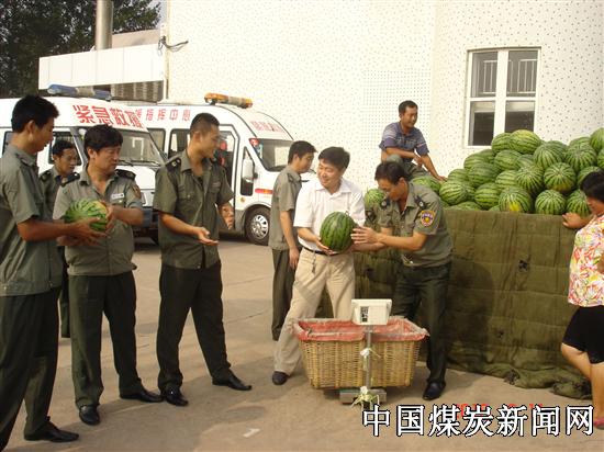 【本网讯】 8月11日,山东龙矿集团机关工会为救护队员送去3000余斤西瓜,表达对龙矿集团救护大队参战指战员的敬意和慰问。 那是8月5日下午17时许,山东招远市辖区岭南金矿罗山矿井内发生电缆起火安全事故,引起中央、省、市各级领导的高度重视,迅速组织各级各部门展开抢险救援工作。龙矿集团救护大队在此次电缆起火救援过程中,出动迅速,救援方案科学,对成功救援起到了关键作用,受到山东省、烟台市、招远市领导的高度赞誉和肯定。