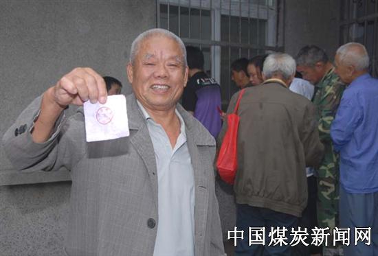 本网讯 8月27日,安徽淮北矿业朱仙庄矿大病退休职工田兆义领到廉租房一层房号后兴奋地向众人展示。当日,该矿对新建610套廉租房进行了集中分配。这个矿在住房分配政策中,视情况给予伤病残职工加分照顾,尽力帮助他们解决实际困难。