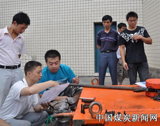 “高师傅吗,快下来看看吧。2016(22)工作面的割煤机电路出故障了。”9月18日下午,四川煤炭产业集团达竹公司小河嘴煤矿机电队职工高发林刚一回家,矿调度室的电话就打到他的家里。二话没说,他转身就走,就连老婆埋怨他还没吃饭就走的话也没听见。作为矿井维修电工,这种情况高发林一年能遇上好多次。 今年37岁的高师傅真名叫高发林,1995年来到小河嘴煤矿,在矿井维修岗位摸爬滚打了15个年头。参工以来,他总是在干中学、在学中干,经常与一线职工摸爬滚打在一起,加班连点是常有的事,他的努力很快使他练就了一身过硬的本领,并逐渐成为了机电队独挡一面的技术骨干。因为多年对矿井电气维修工作的热心劲,从来没有出现过维修故障而深受职工的赞誉,大伙都尊称他为热心肠的“高师傅”。 2009年12月检修期间。深夜2点多,高师傅圆满完成检修任务,已经下班回到家中。突然井下皮带运输集控系统电控及信号系统出现故障。接到任务后,他马上赶到现场,立即着手处理电控及信号系统故障。在处理电控系统故障中,PLC工业控制器输入输出点有上百个,且外围还有上百个点的延伸,需要一个点一个点的排查,仅排查完毕,就已过去了2个多小时。高师傅顾不上休息,紧接着又开始了对失灵的信号系统进行还原。这套信号系统的主机编程是属于可编程控制器,而现场没有此类配件,他又马上返回地面,在电气设备仓库找到可以替代的可编程控制器迅速回到井下。200多步的程序,他一步步的来,一遍遍的试,直到万无一失。就这样,到凌晨5点的时候,高师傅终于将信号系统恢复正常。等他处理好回到家已是早上7点。妻子心疼地“埋怨”他时,他却说:“井下安全生产是大事,咱们矿井维修电工是为一线职工服务的,就是要热心一点,累点苦点没得啥。” 机电队主要担负着全矿井下所有电气设备的维修和保养任务,作为技术骨干的高师傅工作量很大。熟悉高师傅的人,都知道他有一股子热心劲。不管是对自己主管的设备维修保养,还是自己分外的工作,他都做到细心听、看、查,像“保健师”一样呵护着设备健康,掌握了一手处理故障的好技能。9月15日,他下井走到402采区乳化泵站时,听到乳化泵电机有“咔、咔”的异常声音,凭经验判定是泵体里面出了问题。为防止故障升级,他立即要求司机停泵检修。随后,他用随身带的扳手、钳子等工具,开始对泵体进行“手术”。因为乳化液泵是高压功能,各个部位连接密度高,高师傅光螺丝就拆卸了近70余个。当泵体被“解剖”后,高师傅发现果真是轴承球架由于过度磨损,出现了裂纹,问题查出来了,他赶紧将配件箱里的备用件换上,又将泵内里外表仔细检查了一遍,看到确实没什么事了,才长舒了一口气。乳化泵司机李建看到高师傅忙碌的样子,感动地说:“高师傅,今天多亏了你的热心,要不这台泵再运转下去,问题就大了。”高师傅谦虚地说:“维修好设备,安全上不出问题,是我分内的事,谁都会这样做的。” 图1、图2为高发林师傅(左二)正在现场讲解爬底板采煤机的快速检修知识。