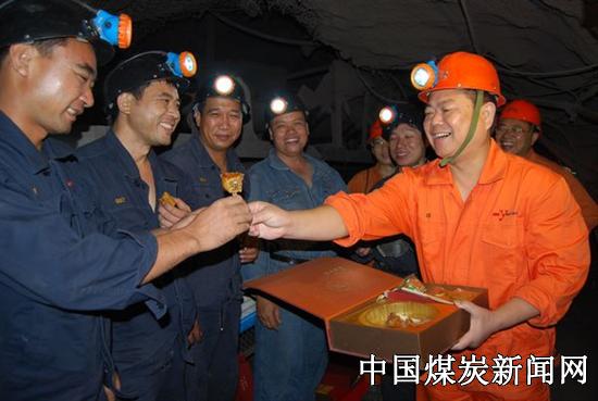 9月22日,中秋节当天广西右江矿务局党委书记、局长叶仿拥率队到保群煤矿井下带班,现场检查矿领导干部带班执行情况,并在井下宣讲国发[2010]23号文的重要意义,和职工一起吃月饼,共度中秋佳节。