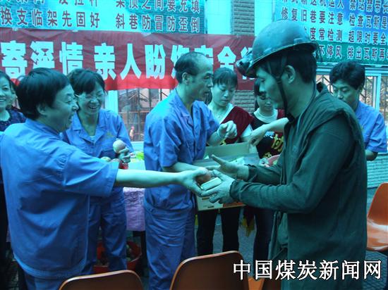 【本网讯】 中秋节这天,陕西陕煤化韩城矿业公司桑树坪煤矿两个井口的文化长廊人头攒动,职工们个个喜气 “月到中秋分外明,每逢佳节倍思亲”,为了让远离亲人的单身职工和节假日上班的井下职工度过一个难忘的节日,矿工会准备了丰富的节日慰问品,在两个井口设立了爱心服务点,由矿党政工领导带队,与工会工作人员和家属协管员一起,向职工发放月饼2500块,苹果500斤,为职工送上节日的关心祝福。同时叮嘱他们要按章作业,牢记安全,确保节日期间安全生产。一个个象征着平安的“红苹果”、一块块预示着吉祥美满的中秋月饼,还有矿工会特制一个个的印有“甜蜜的家盼你平安归来”的“爱心杯” 盛满的茶水,实实在在“温暖”着一线职工的心,你看,他们吃一口月饼喝一口协管员亲手捧上的茶水,再看看纸杯上妻子和女儿的甜蜜笑脸,都乐得合不拢嘴,通过此次活动,进一步筑牢了安全生产的“亲情”防线,让全矿职工深切感受到节日的氛围和家庭般的温暖。