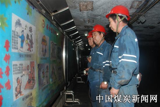 薛村矿工会不断创新安全宣教方式,在井下大巷设置了安全宣教牌板,通过漫画的形式教育职工安全生产,为后四个月的安全生产提供思想保障。图为该矿职工正在观看安全漫画牌板。