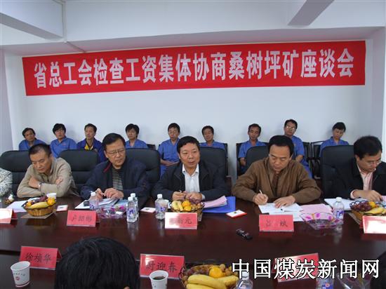 图为省总工会领导与该矿基层工会干部们进行工资集体协商座谈