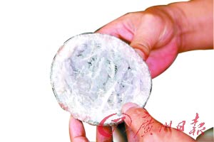 晶莹透亮的“水晶蛋”化石。 河源查获稀世晶体“恐龙蛋” 23枚恐龙蛋化石中包括10枚全球迄今发现数量最多、结构最完整的“水晶蛋” 近日,省公安厅交管局与河源市公安交警部门在河源市区开展机动车涉牌涉证的专项督查行动中,当地交警例行检查一辆挂粤B牌照的小车时,意外发现23枚恐龙蛋化石。前日下午,河源市警方向新闻媒体通报了这一消息。 万元买来23枚“恐龙蛋” 据小车司机杨某供述,这23枚恐龙蛋化石是他近日在源城区和平村等地花1万多元买来的,他原准备将这些恐龙蛋进行加工,将其嵌镶在观赏架上,然后进行私藏或在以后将“恐龙蛋”进行高价转卖,不料当天在运输途中就被交警逮了个正着。 据警方介绍,市民如果私藏或将“恐龙蛋”进行暗中买卖交易,一经查获将会构成犯罪并被依法追究法律责任。 前日,这批恐龙蛋化石和涉案车辆已被河源市交警部门依法扣留,并将对涉案人员杨某作出进一步调查处理。 水晶蛋特写 前日上午,经河源市文化广电新闻出版局副局长、河源市博物馆馆长黄东现场鉴定,确认这次交警部门查获的恐龙蛋化石是河源本地出土的、约生成于6500万年前的白垩纪晚期圆形恐龙蛋化石,其中一窝共有10枚是晶体恐龙蛋(俗称“水晶蛋”),它的质地、规模、蛋皮和水晶体等,与目前河源市博物馆收藏的本土“恐龙蛋”相同,属于国家一级文物,非常珍贵稀有。 据悉,这窝晶体“恐龙蛋”是目前全球迄今为止发现的数量最多、结构最完整的“水晶蛋”。(记者曾焕阳通讯员李燕南、罗辉、余慧敏摄影报道)