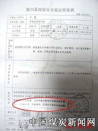 这个鉴定结果,令记者吃惊,目前该房屋承重结构承载力基本能满足正常使用要求,正常使用的要求是什么呢?难道就是伊宾村这样,整天轰隆隆的炮声中,整天像地震似的环境中。 房屋安全鉴定结论,是否对房屋周围的环境进行了鉴定呢?按常理说,鉴定单位按照常规进行鉴定也无可厚非,但是在这种特殊环境中,这样一份鉴定报告,能否保证房屋的安全呢?记者不得而知,但愿不会隐藏深层次的问题,到时候,后果不堪设想! 就像据村民讲的:“目前镇政府解决此事情采取的方法是,根据该村民组范围内所有房屋距离放炮点远近的距离,任取远、中、近三家村民的房屋,去该县房屋安全鉴定管理办公室做安全鉴定,最后,根据鉴定结果将此三家存在的危害程度加起来,然后在平均危害程度,根据平均危害程度的标准,赔偿村民组中的每户村民。由于村民的房屋距离放炮点远近程度不同,受损害程度也不同,距离放炮点远的村民同意此方法,而距离放炮点近的村民强烈反对此解决办法,目前正在协商此事情。” 不去谈这种赔偿方式,是否合理。但事实上,镇政府确实在依据鉴定部门对房屋现在的危害程度,进行了赔偿安置。这种简单赔偿的方式,会不会掩盖房屋发生裂缝的真正原因,原因大家都知道,这种外力并没有消失,在过去短短几个月,村民的房屋就发展到这种程度,有谁能保证房屋损坏程度不会进一步发展呢?这一份鉴定报告,希望不要成为今后各单位推卸责任的依据?希望引起相关部门的重视! 据投诉者介绍:“事件之所以会发展至此,就是因为铁矿真正的老板是县公安局的一位公安,名字叫李红太,警号是026403,原来是县公安局的一位重要领导,目前在拘留所任职。” 为了证明李红太和永锋矿业的关系,村民向记者出示了铁矿当时征用村组土地时,矿方代表的签字,就是李红太。