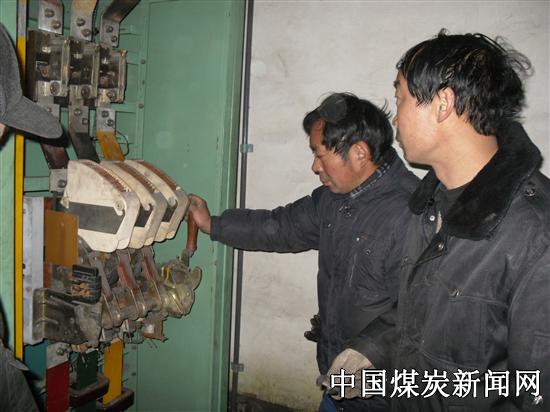 1月13日晚6时43分,陕煤韩城矿业桑树坪煤矿475变电所空气断路器送电手把被检修人员用手推送,随着“叭”的一声断电区全部亮了起来。
