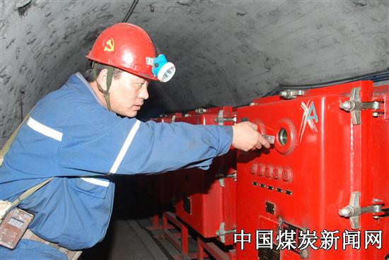 本网讯 进入今年以来,冀中能源峰峰集团薛村矿党委以党员明星岗为载体,在全矿党员中积极开展创先争优活动,激发党员干部立足岗位做奉献的精神和争先意识。图为党员薛志庆正在用遥控器调试新式高开短路、漏电、过载、过流等高压保护功能。
