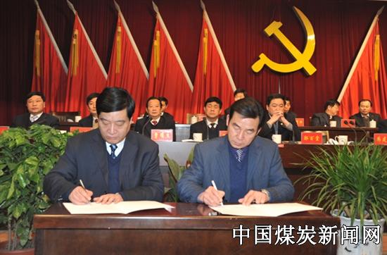 (矿党委书记韩建设与丰源公司书记杨传进签订信访稳定责任状)