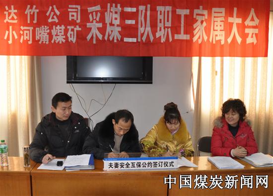 【本网讯】 1月26日,在川煤达竹公司小河嘴煤矿职教室内,掌声、欢笑声不断,由该矿工会组织开展的签订《夫妻安全互保公约》活动在这里拉开了帷幕。