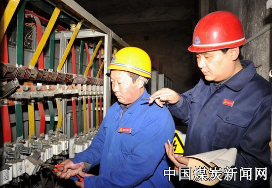 中平能化集团高庄矿供电队把开展“创先争优”活动和党员安全责任区创建同日常安全生产有机结合,党员明确分工,安全责任到人,使每个重要岗位都有党员,党员在各自的岗位上尽职尽责,严把安全关,确保了正常供电,有力地促进了安全生产,图为1月4日,该队党员在检查检修供电设备。