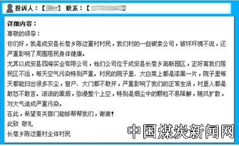 | 河北成安县——“碳素”基地污染严重 群众反映苦不堪言 | |||