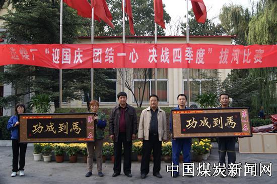 【本网讯】为欢度国庆,丰富职工的精神生活,阳煤五矿选煤厂举办了职工拔河比赛,我厂的洗煤队、机电队、装车队、原煤队、准备队、综合队六个队组和厂职人员,共一百四十名员工参加了此次活动,厂总支书记鲍俊卿亲自组织比赛,比赛分男女两组进行,经过激烈的角逐,女工组厂值女子队夺得第一名,男工组机电队夺得第一名,厂长范文平,厂总支书记鲍俊卿为获奖队组颁奖。