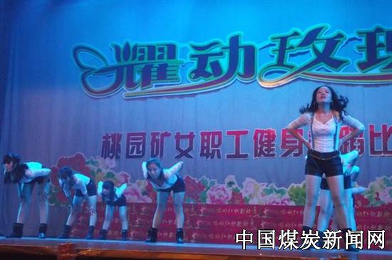 2011年9月29日晚上,安徽淮北桃园矿工人村俱乐部内欢歌笑语,该矿“耀动玫瑰”女职工健身舞蹈比赛正在进行。来自全矿各条战线上的一百多名女工,以健身操、手绢花、印度舞、爵士舞、现代舞、扇舞等舞蹈形式,共同庆祝祖国母亲的生日。