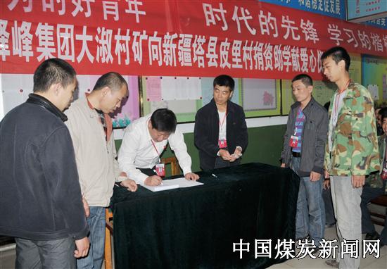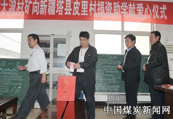 央视走基层•皮里村蹲点日记《踏上艰辛的上学路》电视片播出后,深深感动着全矿每一位干部职工。9月30日上午,冀中能源峰峰集团大淑村矿工会组织全矿干部职工开展了向新疆塔县捐资助学献爱心捐款活动,2195名党员干部职工爱心捐款82597元。图为该矿干部职工正在捐款的场景。( 贺卫东)