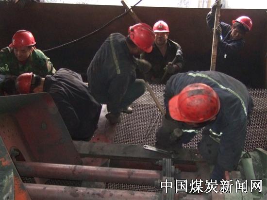 这样一来,即增加了中煤的回收率又减轻了工人的劳动强度。洗煤队在优秀共产党员王润明的带领下,有的抬筛板,有的准备压条,忙的不亦乐乎,机电队李海存等技术大拿忙碌的更换着配重。经过紧张的近6个小时的艰苦奋战,终于在下午16:00按时完成了对中煤筛的改造。检修精英们看着皮带机上载着满满的滚滚乌金,黝黑的脸上露出了自信的微笑。