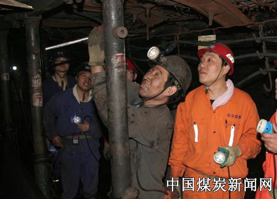 图为在四季度安全生产中,该矿领导干部带班、跟班检查现场安全隐患