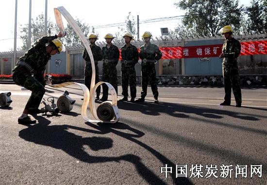 日前,安徽皖北煤电刘桥一矿消防队员正在进行秋季大练兵。针对即将到来的旱季,这个矿立足“演练为了实战,防患止于未然”的实际,努力打造一支招之即来,来之能战,战之能胜的矿山消防尖兵。
