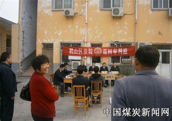 与鹤壁鹤山区法院结合开展“以案普法”活动,活动由鹤山法院把具有代表性的案件庭审搬到该矿的矿区和社区,以此方式对该矿职工和家属进行法律宣传和教育。这种以现场观看庭审来学习法律知识的方式受到了职工、家属的好评。图为10月31日在九矿社区居委会的庭审现场。