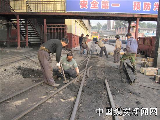 国庆节日期间,陕煤韩城矿业下峪口煤矿开展千米拉煤运输线大检修。该矿运输区干部职工放弃节日休息,坚守检修岗位,分成机电、轨道、电瓶车三大检修维护小组,节日三天检修机电运输设备39台(件)、电瓶车12台,更换运输道叉18副、轨道680米、枕木350余根。据悉:日前,经矿工程质量小组检查验收,2700米运输线达到检修标准,圆满地完成节日检修维护任务。 图为该矿国庆节运输轨道线检修场景。