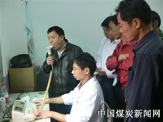 10月29日至11月5日,福建永安煤业公司邀请三明疾病预防控制中心医生到上京分公司,为在岗职工和离退休职工进行职业病普查。本次普查内容包括B超、心电图、胸透、肺功能等项目。图为职工在做肺功能检查。