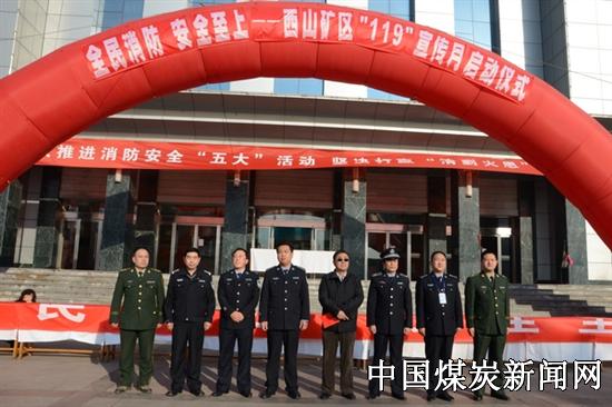 煤炭新闻网讯(高宇飞等/图文)11月9日上午,西山工人文化宫门前锣鼓喧天,观者不断。在这里,太原消防支队西山大队举办了以“全民消防,安全至上”为主题的西山矿区“119”宣传月启动仪式。西山煤电集团党委常务副书记徐俊明、公安西山分局局长王劲松、西山公安消防大队全体成员、集团公司各单位消防安全负责人参加了此次启动仪式。