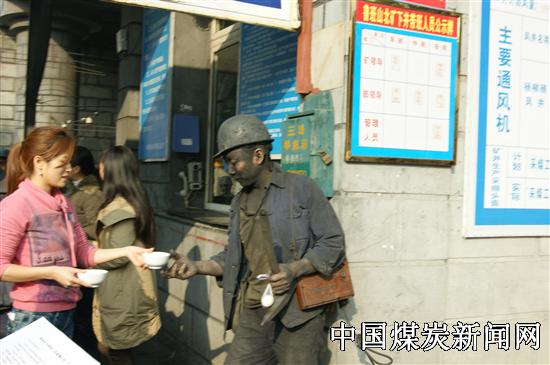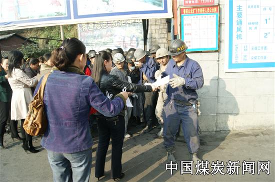 11月18日下午,来自鲁班山北矿机关和基层队的30名女工利用工休时间,自发组织到矿井口,向刚出井的早班职工递上热腾腾的熟鸡蛋、热豆浆,散发安全传单,宣讲安全知识,温馨地叮嘱们时刻绷紧安全弦,上标准岗,干标准活,杜绝违章蛮干,奋战二十天,实现全年安全生产。
