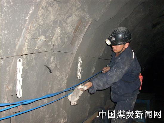 国电平庄煤业公司红庙矿二井坚持开展质量标准化动态达标活动,率先对全井的缆线、信号线进行集中整治。图为该井机关组织的党员积极分子对采掘工作面的信号线进行擦拭防尘。