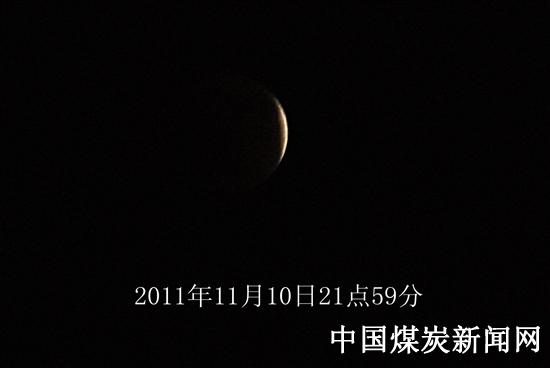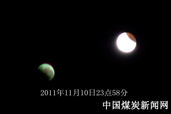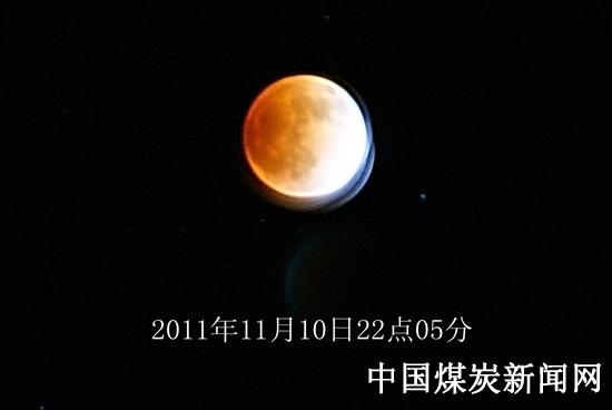 【本网讯】2011年12月10日晚,十年来最美月全食亮相阳煤集团五矿上空,出现红色月亮。因为太阳光中红色光线的波长最长,受大气层散射和吸收的影响较小,它们可以穿透大气层,折射到躲在地球影子后面的月亮上,于是肉眼看到的月亮就变成了红色。