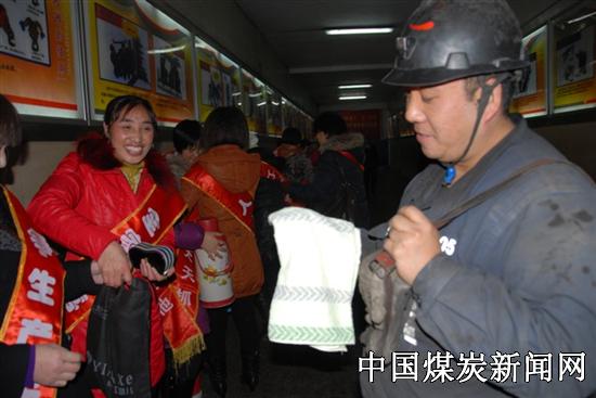 手捧着写有“安全”二字的鞋垫和崭新的毛巾,下井工人表示衷心的感谢,纷纷说“婆姨们”送的礼物最及时最贴心,在工作中,他们将“婆姨们”的温暖化作促生产的热情,上标准岗、干标准活,在各自的岗位上做出更大的成绩。