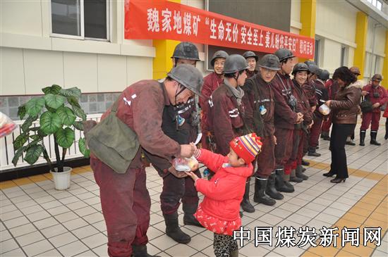 近日,甘肃靖远煤业集团魏家地矿组织开展以“生命无价、安全至上、妻儿盼你平安归”为主题的慰问活动,组织职工家属参加班前会,在井口迎送亲人上下班。