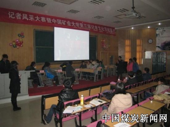 【本网讯】 为了进一步提高校园记者的专业化水平,加强校园新闻工作的宣传,2011年12月4日,由中国矿业大学党委宣传部、《徐州日报》、中国矿业大学资源与地球科学学院联合主办,矿大资源学院新闻中心承办的“记者风采大赛”在矿大镜湖大讲堂举行。矿大资源学院代表队、矿业学院代表队、管理学院代表队、大学生记者团代表队、学生在线代表队和学通社代表队参加了此次比赛。来自资源学院11级辅导员老师郑德志、信电学院新闻中心指导老师李瑞军和计算机学院10级辅导员仝雪姣担任此次比赛评委。