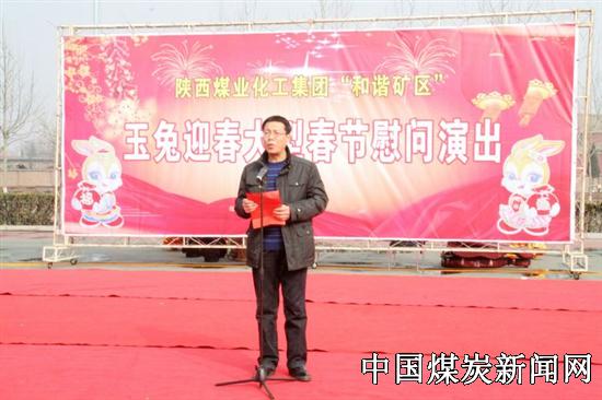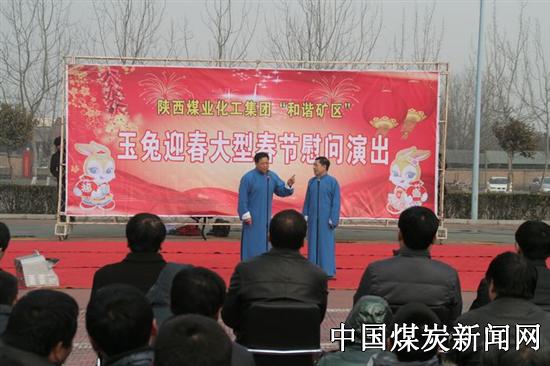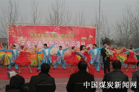 本网讯 2月10日下午,陕西煤化工蒲白白水煤矿新井广场欢歌笑语、掌声阵阵,陕煤集团“和谐矿区,玉兔迎春”大型慰问巡回演出在这里隆重举行,为节日里的矿区送上了一道丰盛的文艺大餐,并以此向矿区全体职工家属致以新春的祝福。精彩的演出将浓浓的节日气氛推向了高潮,白水煤矿、白水煤矿社区党政领导等近千名干部职工度过了欢乐的一天。